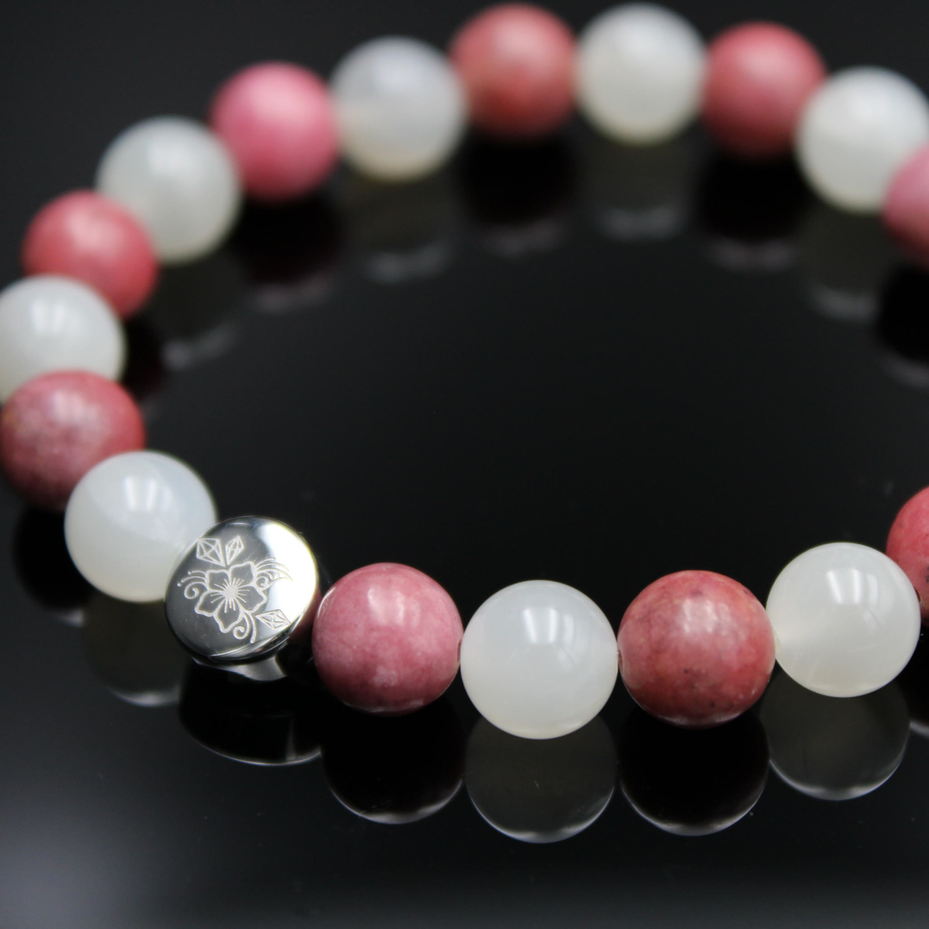 Material: Naturstein (Rhodonit & Heller Mondstein), Edelstahl